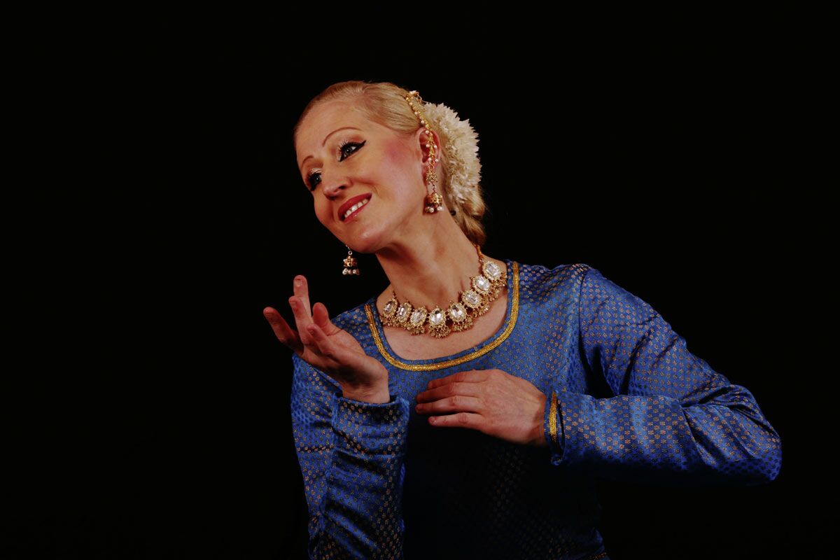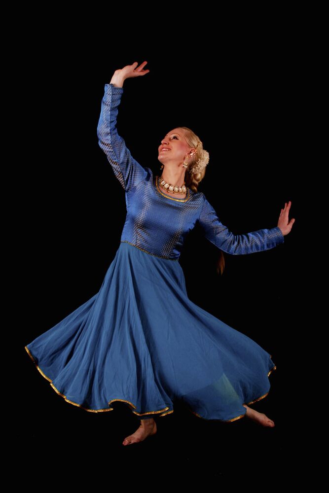 Als Schülerin von Guru Smt. Geetanjali Lal präsentiert Anne Dietrich den nordindischen Kathaktanz weltweit.