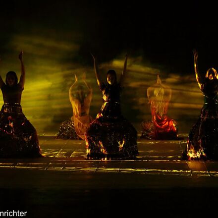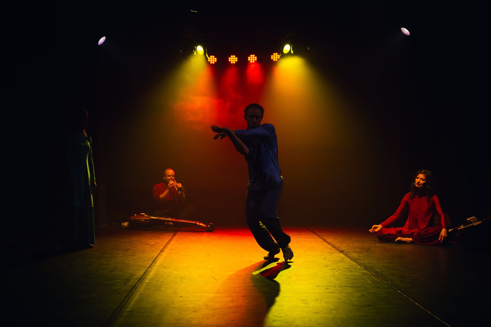 Deutsch-indisches Tanzstück zum Thema Spiritualität mit den Tanzstilen Kathak, Mohiniyattam und zeitgenössischem Tanz.