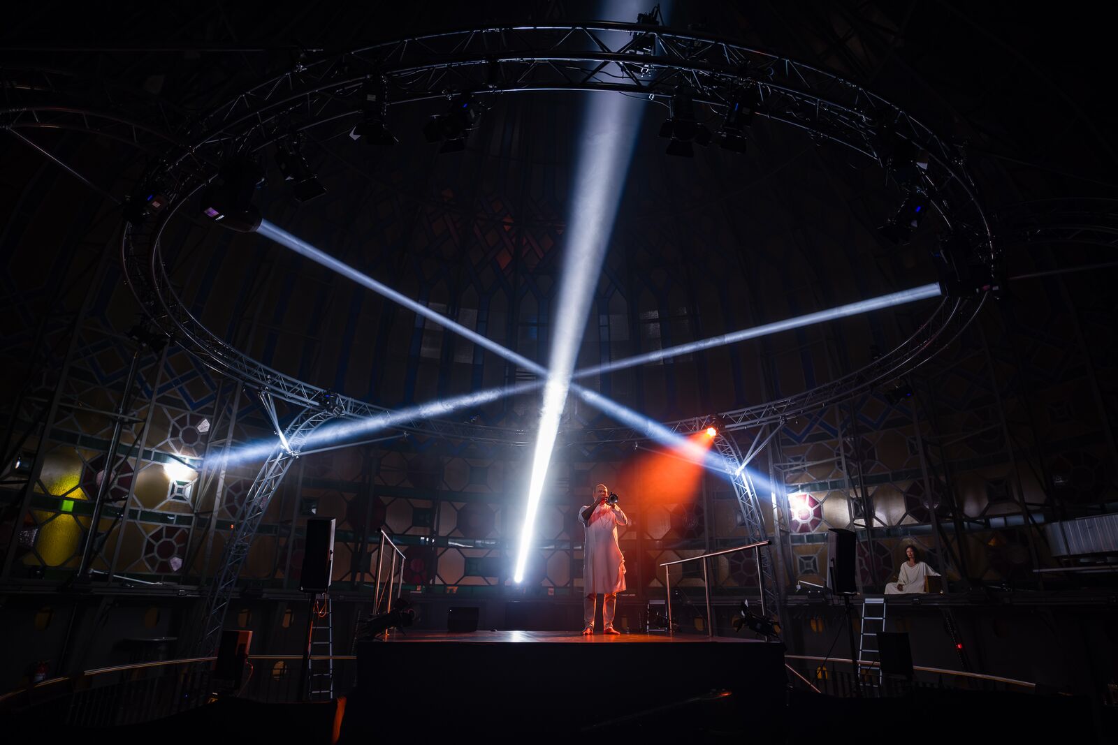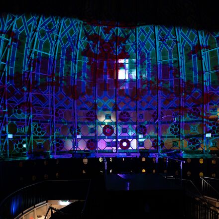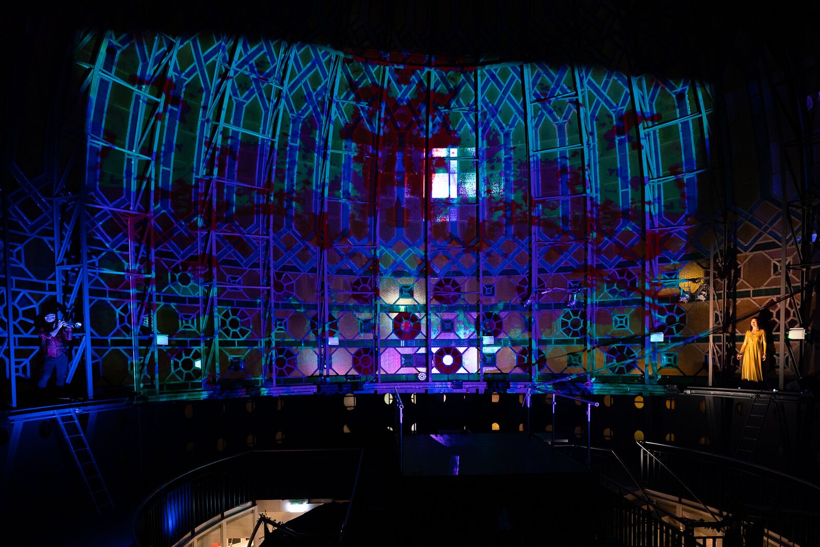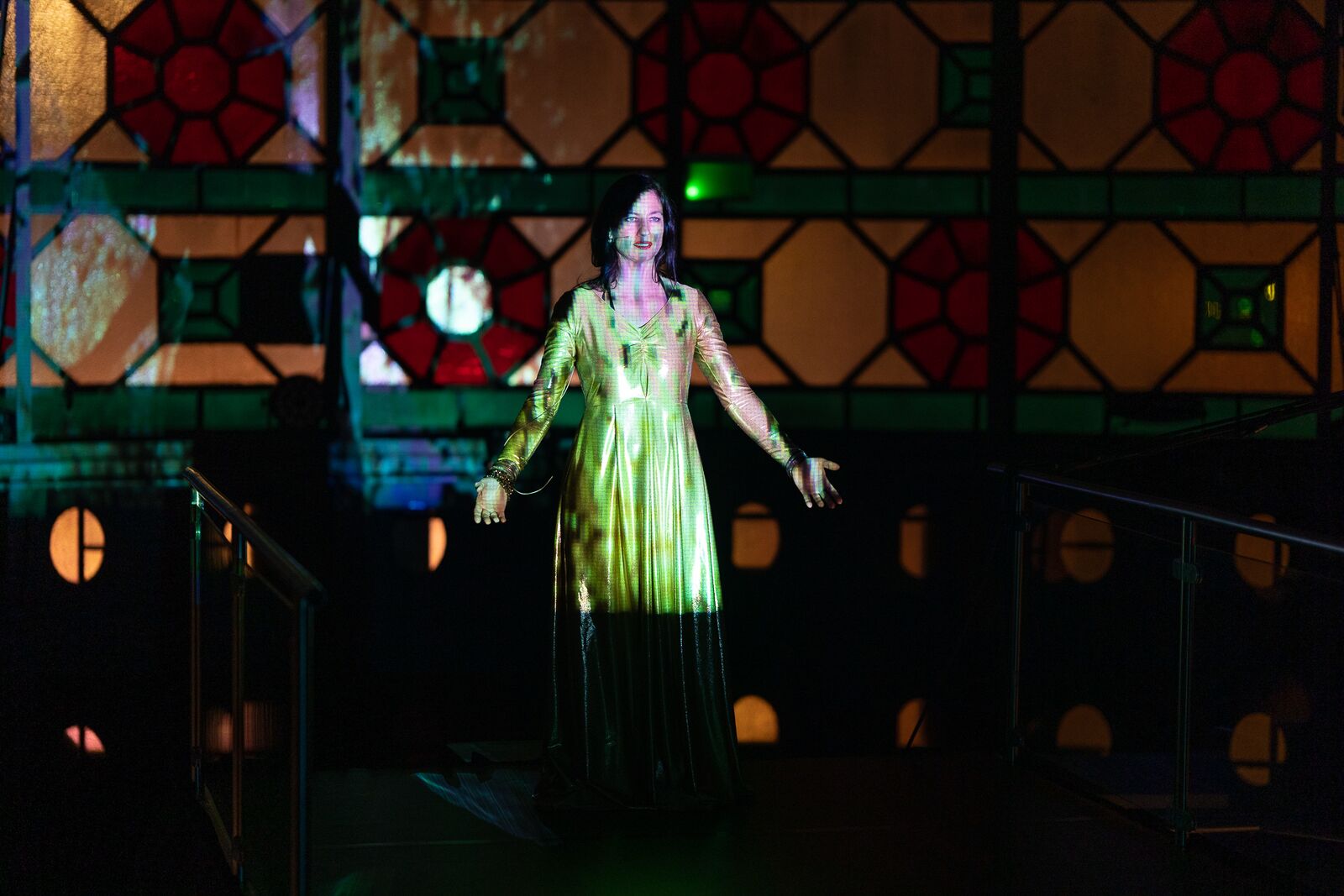 In IMMERSION trafen der italienische Gastkünstler und Tänzer Paolo Cingolani, das Dresdner Performance-Ensemble Atmadhvani und der Medienkünstler Jo Siamon Salich zusammen und tauchten in die architektonische Besonderheit des Gebäudes der Yenidze ein – multimedial, immersiv und interaktiv.