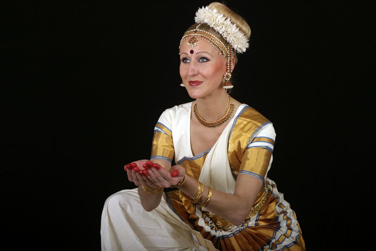 Als Schülerin von Padmashree Bharati Shivaji, Late Prof. Kalamandalam Leelamma und Pallavi Krishnan verbreitet Anne den südindischen Tanzstil Mohiniyattam in Deutschland.