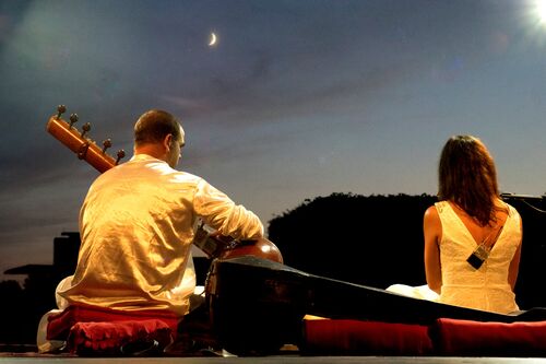 Weltmusik, kreativ und live gespielt, dazu Geschichten aus der Feder großer Meister des Ostens – das ist die neue Produktion von Atmadhvani. Einmal mehr suchen die Künstler mit diesem Programm die Herausforderung einer Verbindung zwischen Orient und Okzident. Stilecht auf dem Pfad der Überlieferung bis hin zu völlig Ungewohntem verschmelzen hier wunderschöne indische Gesänge mit den rasanten Drehungen des Kathak oder den sanften Biegungen des Mohiniyattam, werden Figuren mit virtuosen Handgesten (Mudras) ausdrucksstark und zeitgemäß dargestellt. Dabei führen die perlenden Klänge der Sitar von einer Szene in die andere, ja, bereiten den Teppich auf dem die Tänzerin schreitet. Die selbst in Indien, wegen hoher Anforderung an die Spielfertigkeit des Musikers, selten zu hörende Surbahar spiegelt mit dem ihr eigenen, tief suggestiven Klang feine Regungen der Charaktere. Bizarre Landschaften des Himalaya wechseln mit der Unendlichkeit des Himmels über der Wüste. Atmadhvani fängt sie ein und macht sie erlebbar für den Zuschauer – nicht fremd, nicht fern, sondern zum Greifen nahe.
