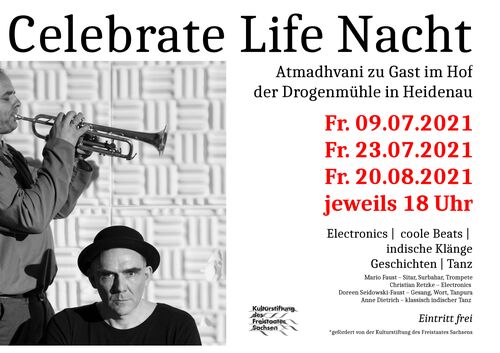 „Celebrate Life Nacht“ feiert die Sounds und Farben Indiens! Durch den Einsatz von Electronics mit eingängigen Beats, westlichen und gefälligen Sounds entsteht ein Klangbild, welches sich wie selbstverständlich mit den ungewohnten Tönen Indiens verbindet.